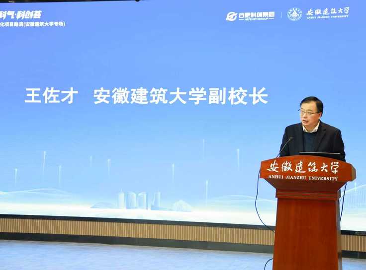 王佐才对到场嘉宾表示欢迎与感谢,强调此次活动举办是安徽建筑大学贯彻落实党的二十届四中全会精神及省委、省政府关于科技创新与成果转化的部署重要举措。他指出,学校率先设立“科研特区”,构建“空间保障+资本对接+专业服务”三维支撑体系,成果转化成效显著。学校将持续深化科创体制改革,完善转化服务体系,优化“尽职免责”机制,让科研人员敢创新、乐转化、善创业。