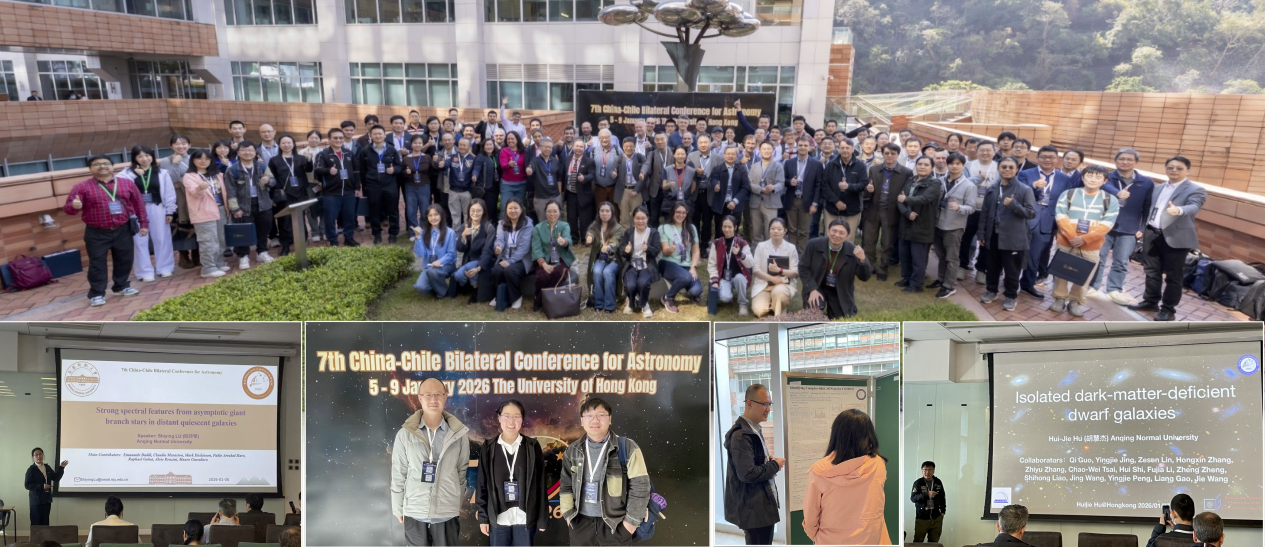 1月4日至9日,第七届中智天文双边会议在香港大学举行。本次会议由香港大学理学院太空研究实验室、中国科学院国家天文台及智利天文学会共同主办,旨在促进中智两国在天文学领域的合作交流,共享前沿研究成果与科研设施资源。安庆师范大学数理学院陆诗莹、郭晓通、胡慧杰三位教师应邀参会,并在会上展示了学校在天文与天体物理方面的最新研究进展。