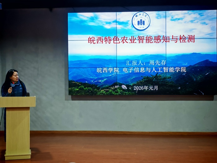 会上,周先存以《皖西特色农业智能感知与检测》为题作学术报告。报告阐述了人工智能技术在特定农业场景应用的技术原理,并分享了其带领的皖西学院智慧农业团队立足皖西地区特色农业资源禀赋,如寿霍黑猪、皖西白鹅、朗德鹅等养殖和以石斛为代表的中药种植,利用物联网、大数据、人工智能技术进行数智化赋能的科研实践与产业化推广。周先存指出,智能感知与人工智能技术的深度融合,是推动传统农业向数字化、智能化转型的重要技术支撑,对提升农业生产效率和管理水平具有重要意义。报告内容紧密结合区域农业发展需求,具有较强的针对性和实践价值,引发了与会专家和企业代表的广泛关注。