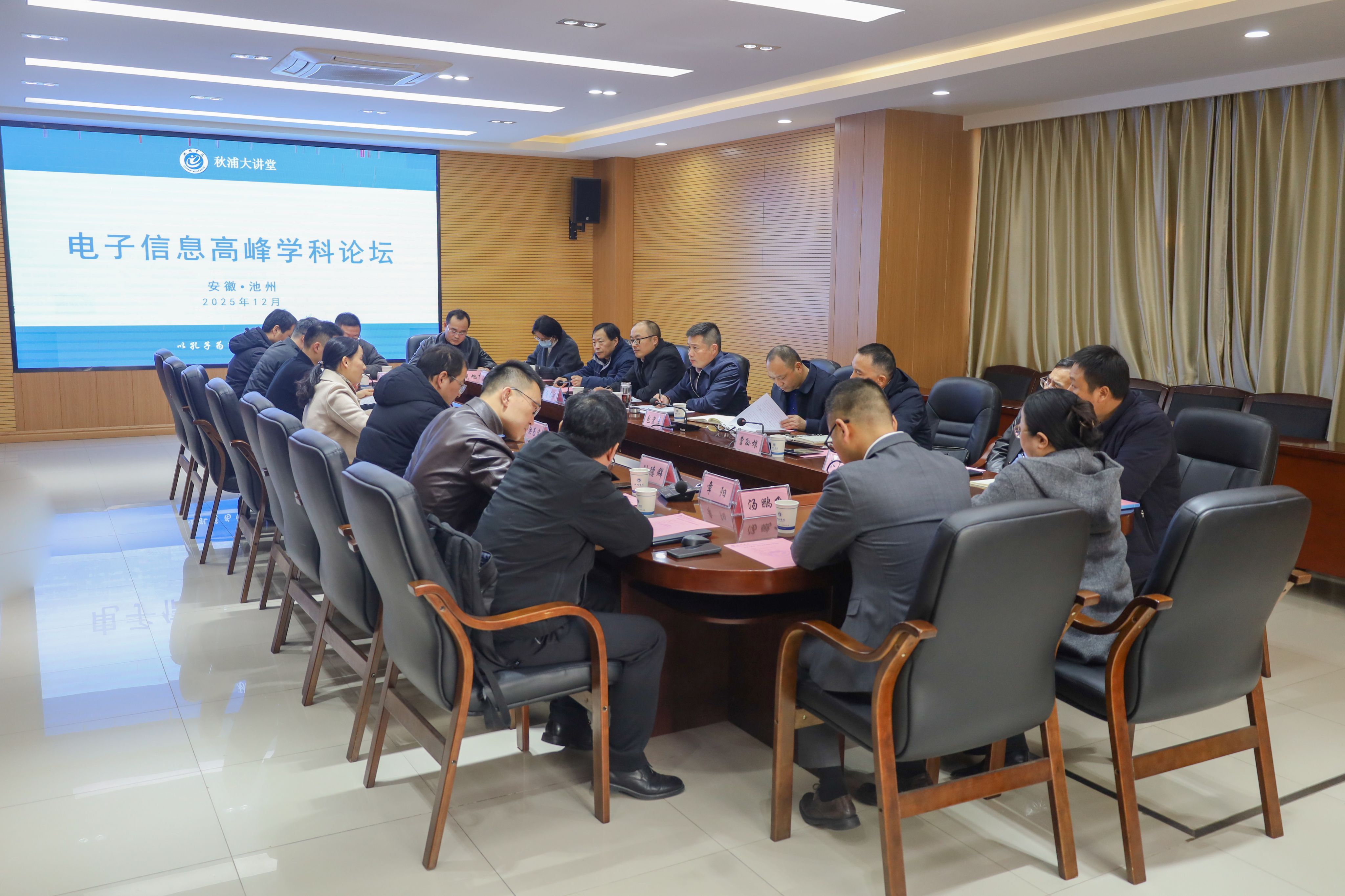 12月17日下午,池州学院“秋浦大讲堂”之“电子信息高峰学科论坛”在行政北二楼会议室顺利召开。池州市经开区管委会、市工信局、市发改委等政府部门负责人,半导体行业重点企业代表、行业导师,池州学院党委委员、副院长李明玲等共同出席论坛。