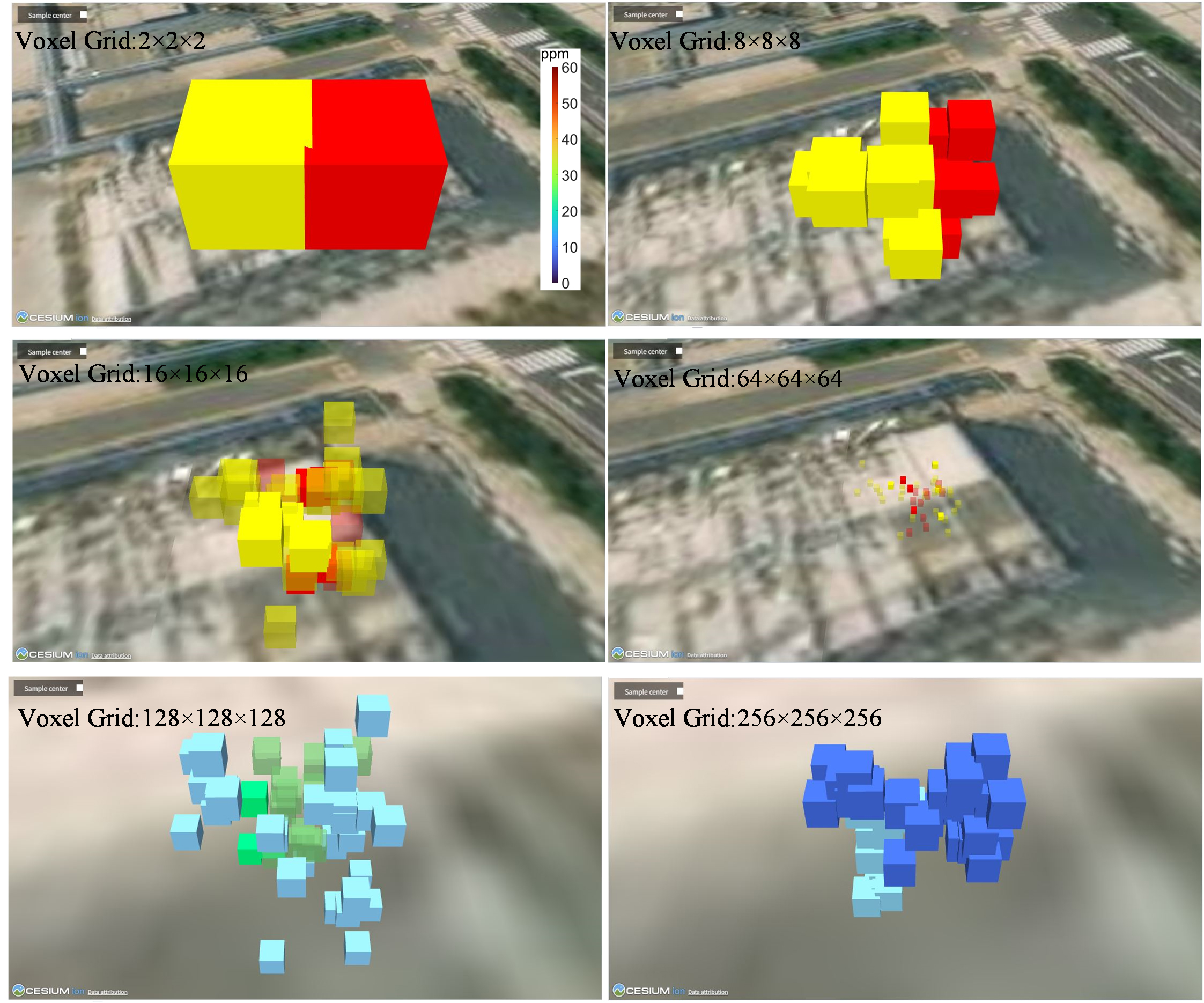 针对大尺度空间气体泄漏场景,团队利用单台红外远程遥测系统即可完成气体空间定位和分布重建。传统气体羽流的空间定位和分布重建方法都需要来自多台仪器或多角度的测量数据,增加了部署成本,实际部署过程复杂。此外,红外远程遥测系统的分辨率和计算机存储容量限制了气体羽流重建的空间分辨率。为了破解上述问题,团队依托自主研发的ZK-FTIR-GS1000型气体遥感成像仪,提出了一种基于深度学习的三维气体羽流重建生成网络。该网络采用八叉树表示来模拟气体羽流的稀疏三维分布特征,能够从粗到细地输出气云三维结构,且仅需要较小的计算和内存资源支撑。现场实验证实,该方法可以确定泄漏气体羽流的空间位置及分布范围,适配大尺度场景应用需求。
