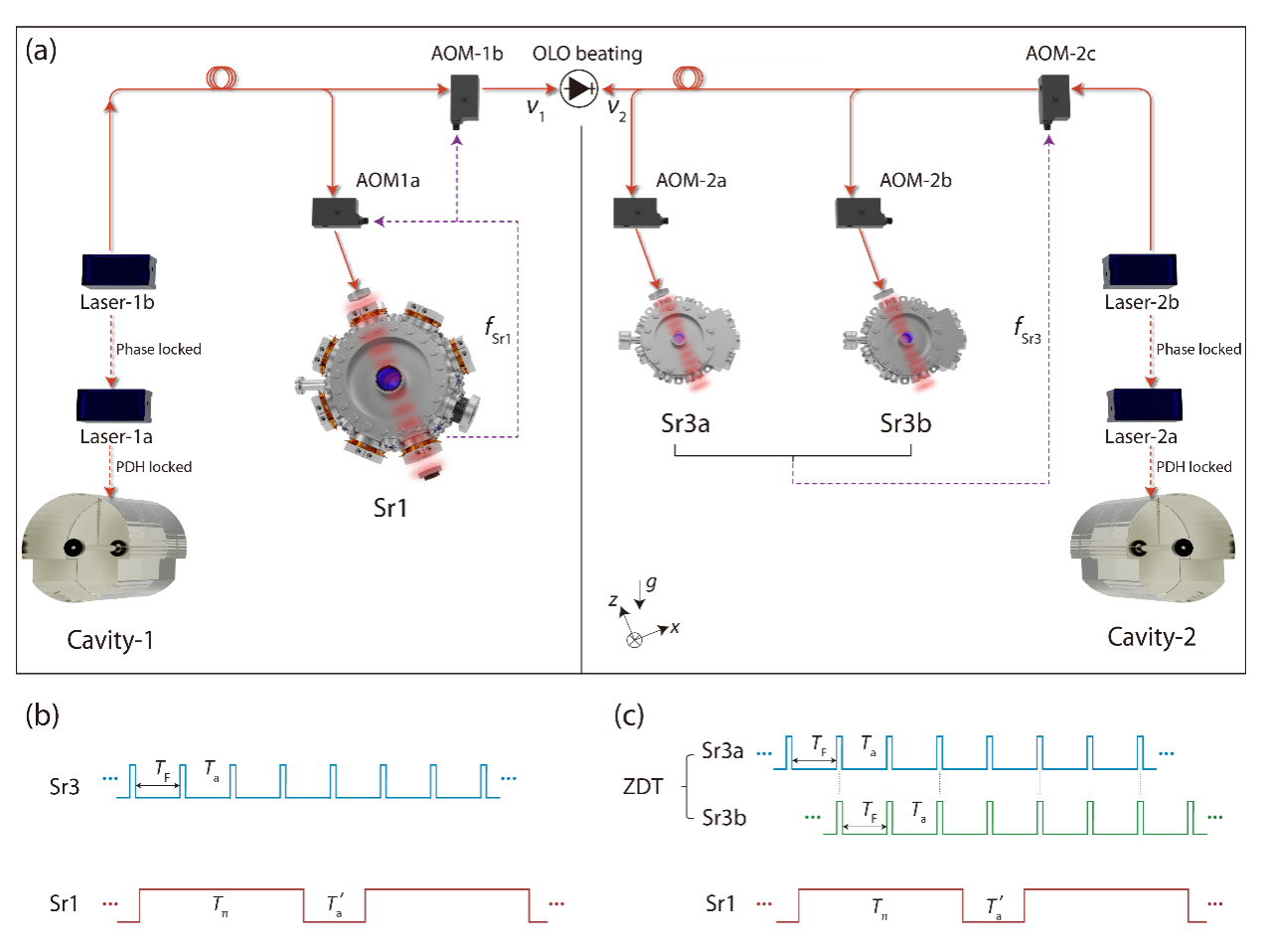 图1.锶原子光钟Sr1和Sr3,其中Sr3由双物理系统组成,并交替运行。