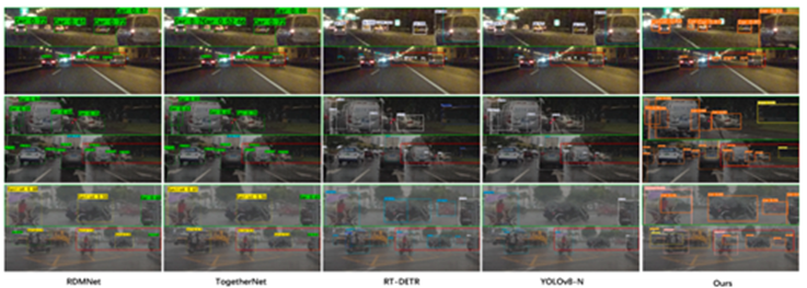 恶劣的天气条件严重影响自动驾驶系统的视觉感知能力,主要表现为图像质量下降、目标遮挡加剧以及光照环境不稳定。尽管当前主流基于深度学习的检测方法在标准场景中表现优异,但在恶劣天气下其鲁棒性显著受限,原因在于受损特征表示与算法适应性不足共同削弱了模型在动态气象条件下的泛化能力。