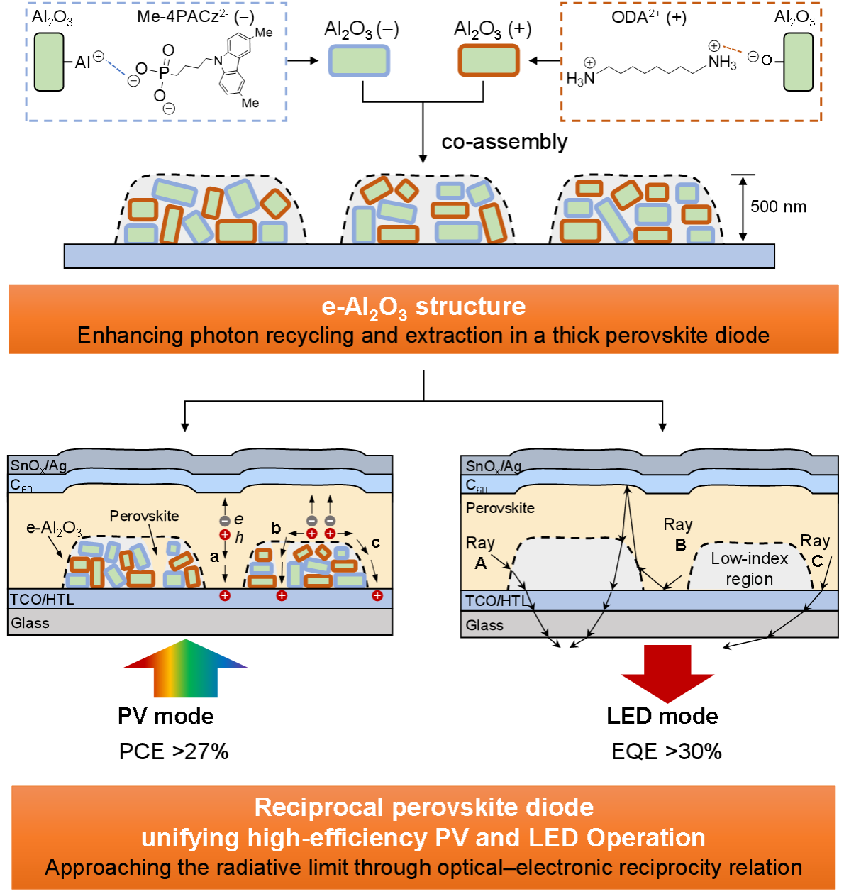 图1 基于e-Al2O3结构的钙钛矿光电二极管展现PV-LED互易性