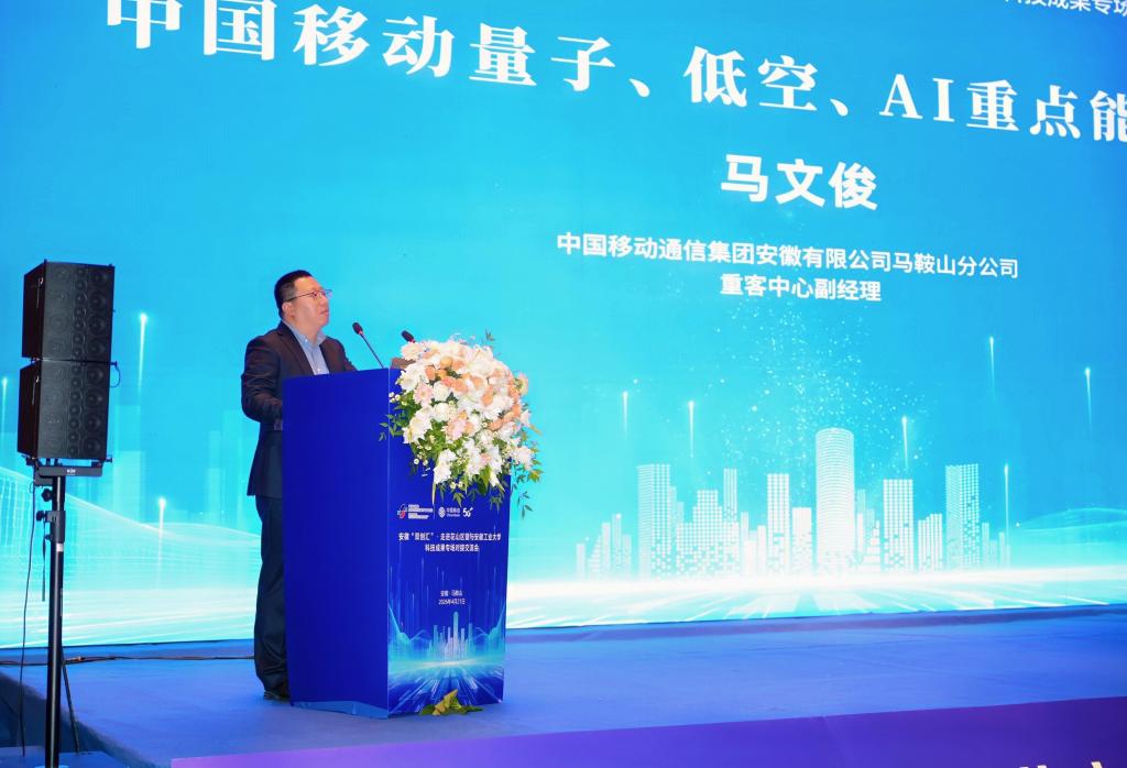 在成果推介环节,花山区重点推介了人工智能顶尖孵化器生态;中国移动分享了在量子通信、低空经济及AI能力等领域的最新布局与应用场景;安工大计算机科学与技术学院集中推介了在深度聚焦智能制造、大数据应用、AI大模型等关键技术领域的科研成果。