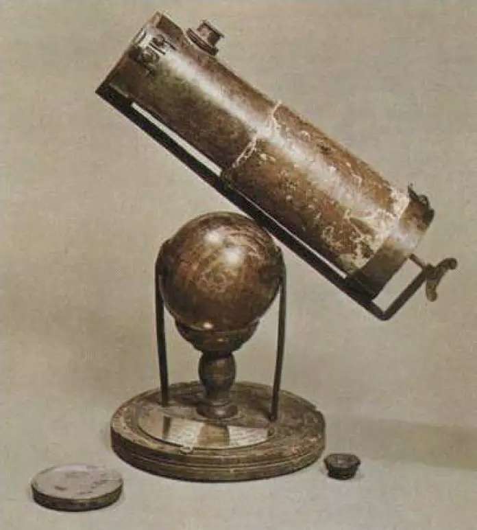 1668 年,英国著名科学家牛顿在伽利略望远镜和开普勒望远镜的基础上,制作出了世界上第一架反射式望远镜(图2),将折射光线的凸透镜变成了反射光线的凹面镜,主镜尺寸更容易增大。1845 年,英国人罗斯伯爵威廉·帕森斯制造出了口径72 英寸(1.8 m)的望远镜:“列维亚森”(图3)。这架望远镜在建成后长达70 年的时间里都把持着世界第一的称号。直到1917 年,才有更大的望远镜打破这个记录。
