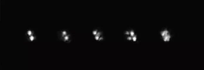 图4 宝瓶座ζ双星(角间距为2")在湍流影响下的星像变化
