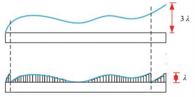 将传统二元光学领域的phase wrapping 技术引入到对波前的校正中,充分利用液晶器件高像素密度的优势,可将器件的调制量要求由2—3 μm减小到只需要达到中心波长处的1 λ即可,如图12 所示。以实际使用的0.78 μm中心波长器件为例,对于2 μm调制量需求,采用phase wrapping 技术可以使盒厚下降为原来的39%,器件的响应速度可提升6倍以上。