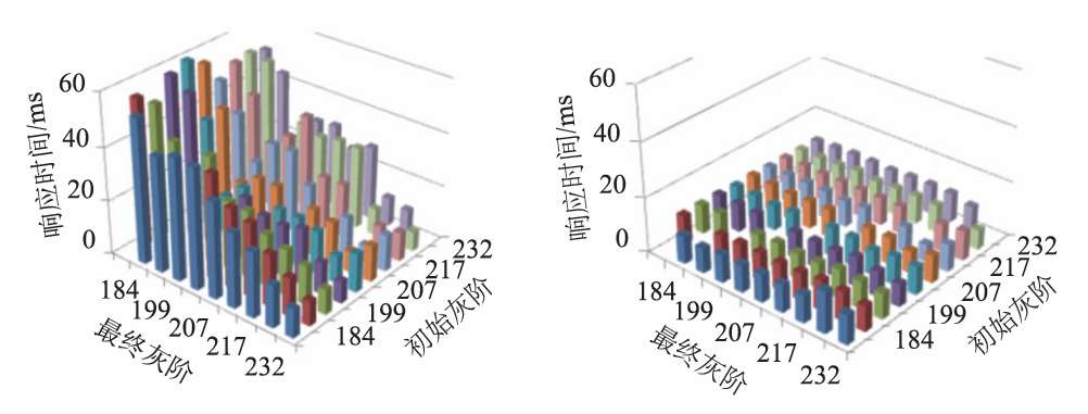 图15 过渡灰度修正前后液晶灰阶响应时间分布图