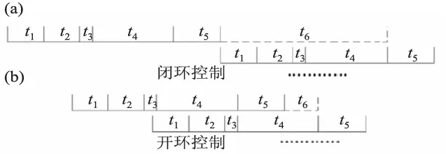 图16 闭环控制与开环控制时序图。其中t1、t2、t3、t4、t5分别为探测器的曝光、读出、波前处理、数据传输及液晶器件响应时间
