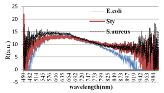 图1. 中性培养的三种细菌的单个菌共焦显微后向散射光谱