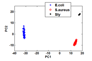 图2. 中性培养的三种菌光谱的主成分分析结果