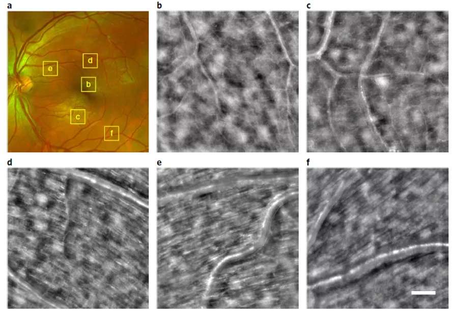 该系统拥有对从视网膜色素上皮层到神经纤维层的细胞水平的在体成像能力,开启了对视网膜探索的新道路。