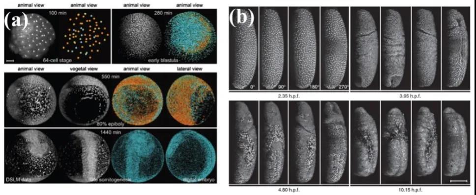 图5 光片荧光显微用于观察斑马鱼和果蝇胚胎发育[4]